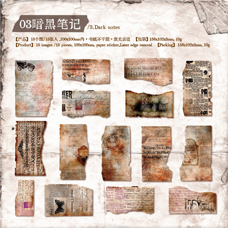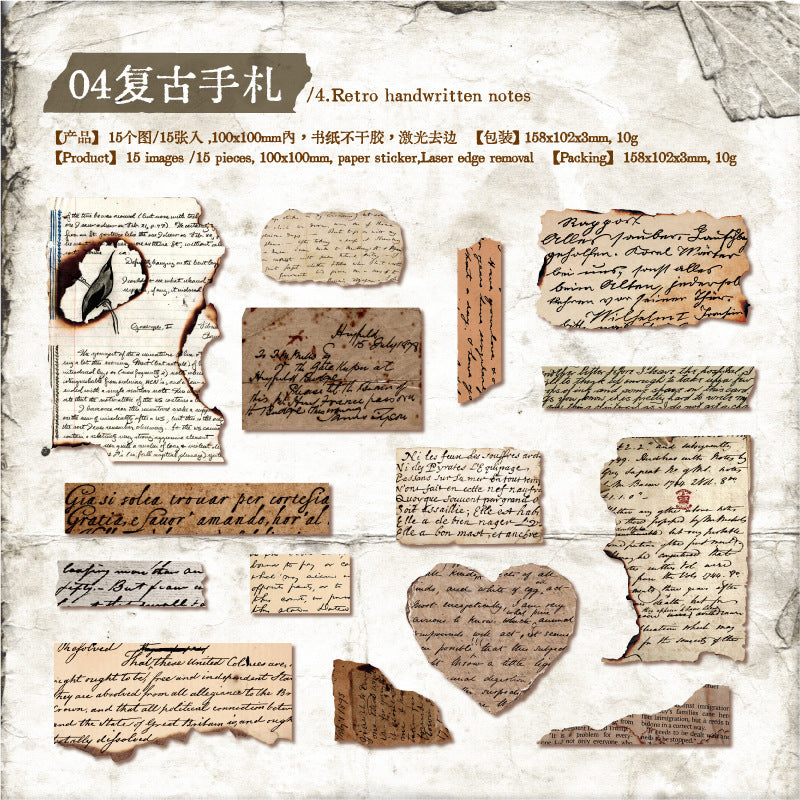 15pcs retro-burned sticker pack (S25102806) - S25102806-1 is backordered and will ship as soon as it is back in stock.