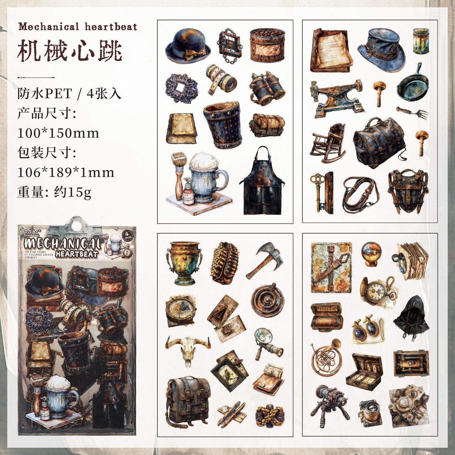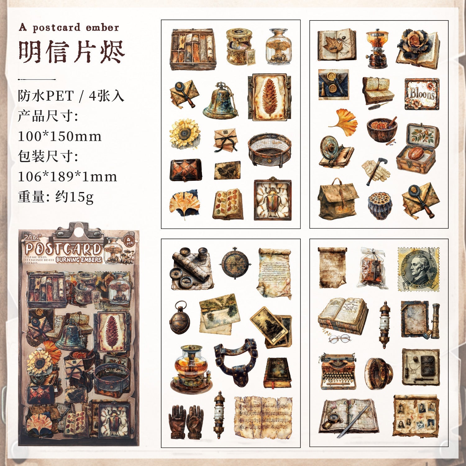 4pcs vintage sticker pack (S25111804)